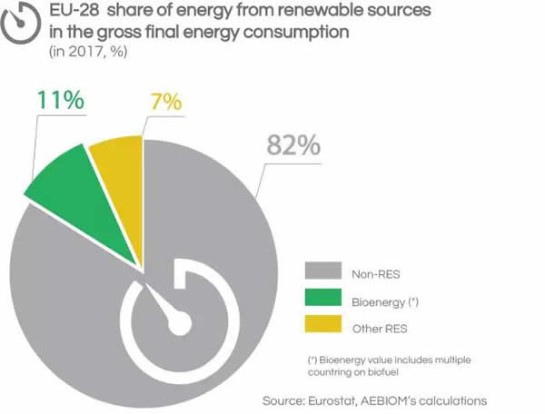 生物能源是歐洲領(lǐng)先的可再生能源。根據(jù)歐盟統(tǒng)計(jì)局和歐洲生物質(zhì)能協(xié)會(AEBIOM)的數(shù)據(jù)顯示,今年生物能源將占?xì)W盟28國能源消費(fèi)總量的11%。其他可再生能源,如水力發(fā)電、風(fēng)能、太陽能和地?zé)崮?/a>源,再占7%。但是,不可再生能源仍占?xì)W盟能源使用量的82%。