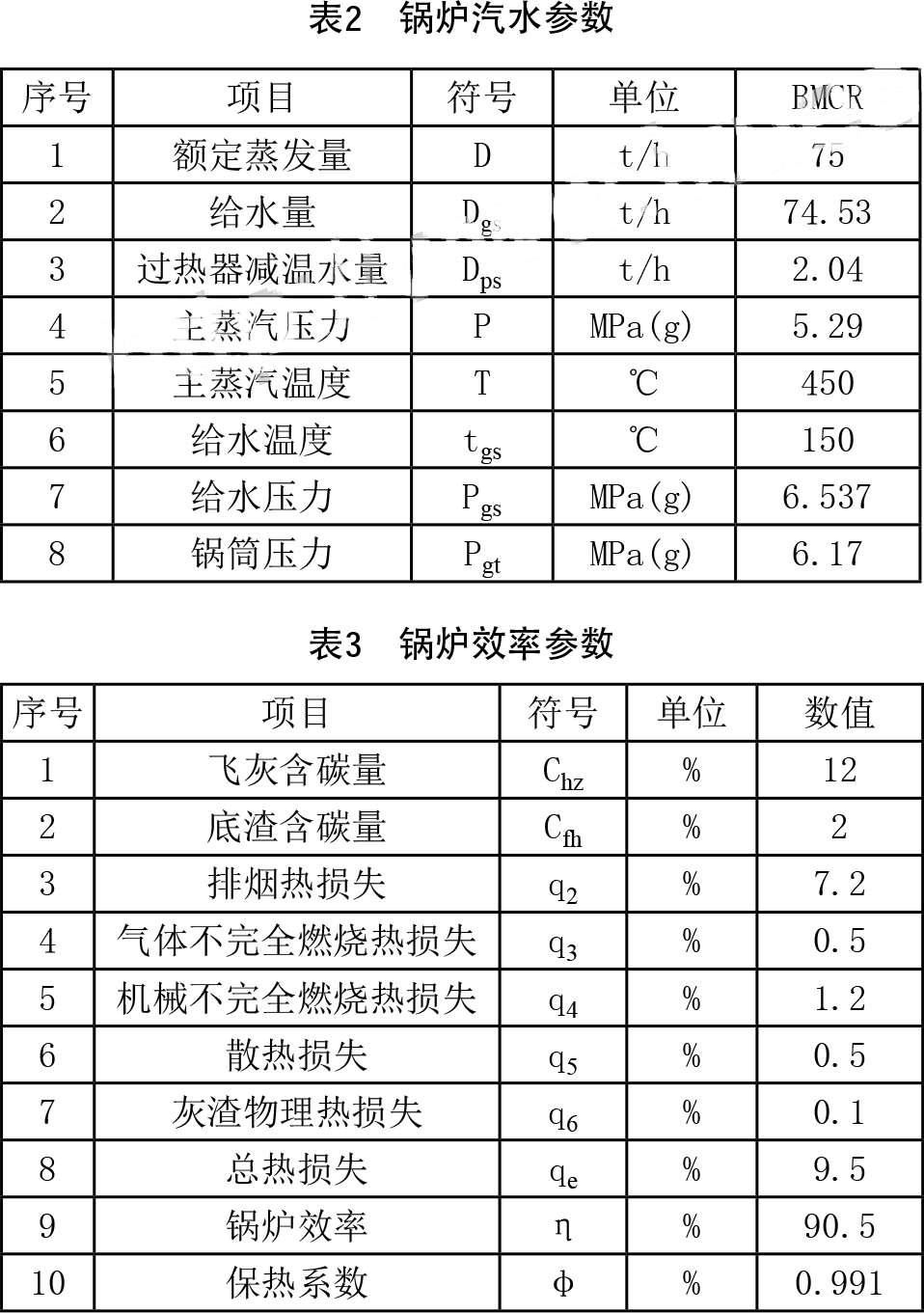 燃料入爐前的粒徑要求控制在長8cm、寬2cm、厚2cm以內(nèi)。鍋爐運行時,根據(jù)實際的燃料情況進行運行調(diào)整。 2.2鍋爐設計參數(shù) 鍋爐汽水參數(shù)見表2,鍋爐效率參數(shù)見表3。鍋爐簡圖見圖1。
